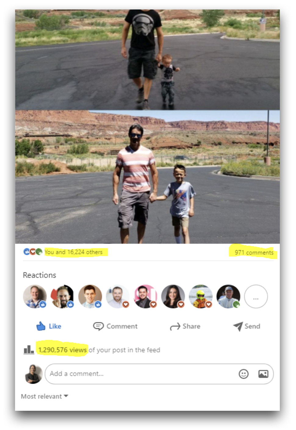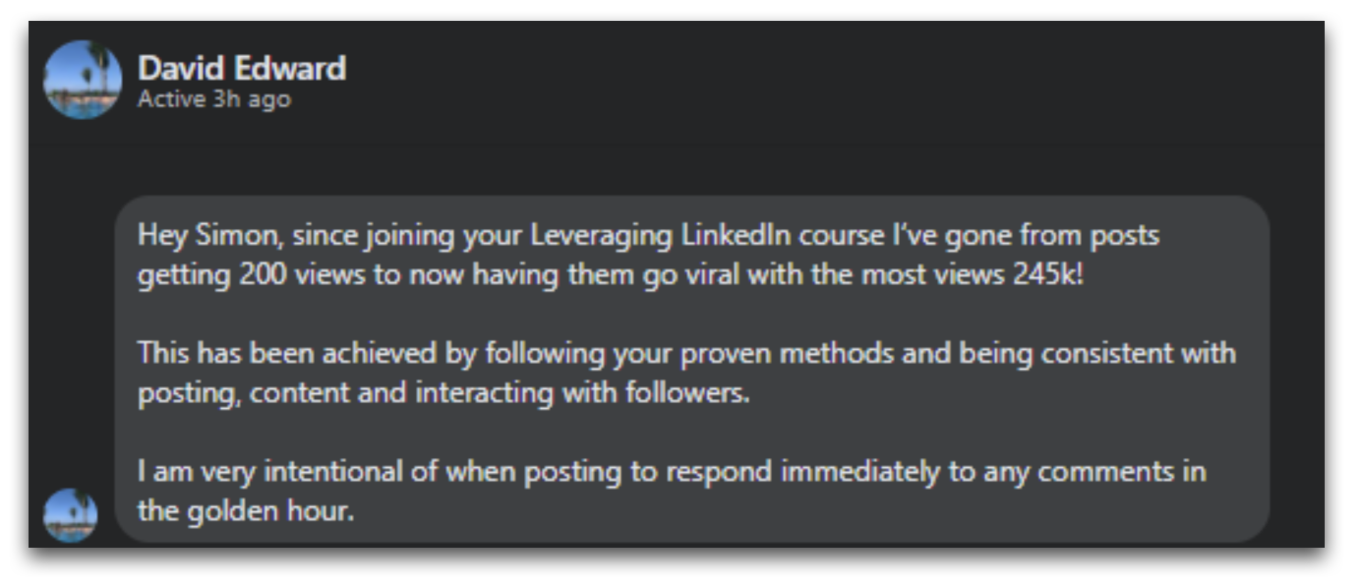 That's right, he’s reaching hundreds of thousands of people per month by posting on LinkedIn!