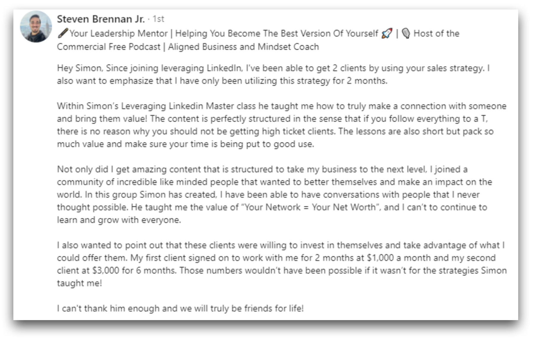 The Leveraging LinkedIn System I Developed Freed Me From All That And It Allowed Me To Focus On Creating Content That Attracted My Ideal Client